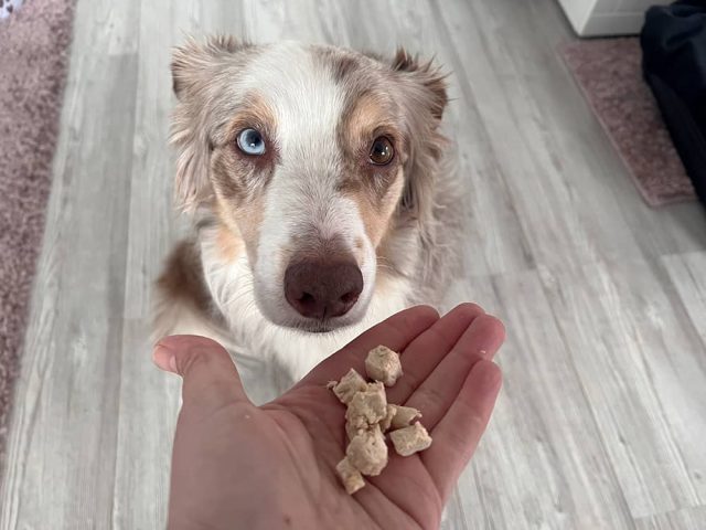 Unsere Hunde lieben die Flocken und daher nutzen wir sie als Leckerli im Hundetraining gerne.