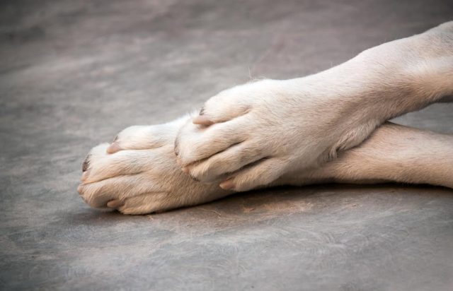 - Er schleift mit den Hinterpfoten auf dem Boden