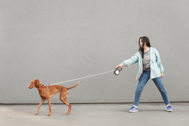 Erst, wenn Dein Hund leinenführig ist, kann eine Rollleine bei Euch einziehen.